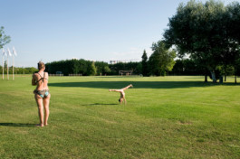 A small beach, a big camping and an enormous shopping mall come one after the other from the sea towards the country, while the density of tourists and spaces get lower and lower. As commercials say, in between the camping and the beach (with some shoppinh in the mall), "on the blue of the Adriatic sea": that's the way to consume holidays.