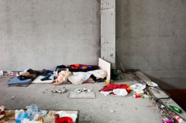 Turin, 2011. Former factory FIAT Grandi Motori - historical symbol of the big production of FIAT, as well as place of partisan' and workers' struggles, was since October 2010 being cleared after years of neglect. The imposing, scaring and fascinating emptiness of industrial archeology, effect of the decadence of the traditional factory system, reveals itself as actually filled by homeless and hopeless migrants, new orphans of contemporary society. In the globalized world, where migration is moving huge floods of people and work is getting more and more precarious and spoiled of workers' rights, the narration of the empty spaces of the factory and of the interstices filled by the intimacy of its inhabitants, become a symbol of contradictions implicit in the idea of progress capitalistic and neoliberistic society is based upon. The space becomes habitat, the physical space for a sort of living, the place that permit, and only offers, a possibility for survival.